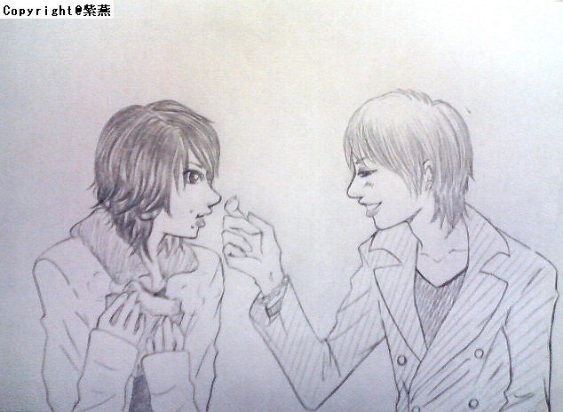 んで、描いてるうちに、先日のたっちゃんが中丸くんの横で肉まんをほおばるってネタがフラッシュバックして、最終的にこんなんなりました。